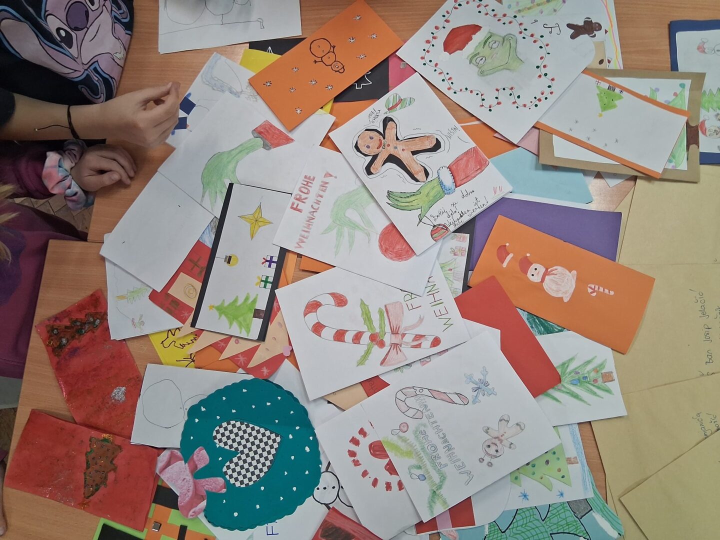 Pripremajući se za Božić učenici su na nastavi njemačkog jezika izradili božićne čestitke koje i ove godine šaljemo prijateljima iz škola u susjedstvu i Zagrebačkoj županiji. U čestitkama su se učenici ukratko predstavili, rekli iz koje škole dolaze te poželjeli Frohe Weihnachten und alles Gute in neuem Jahr!