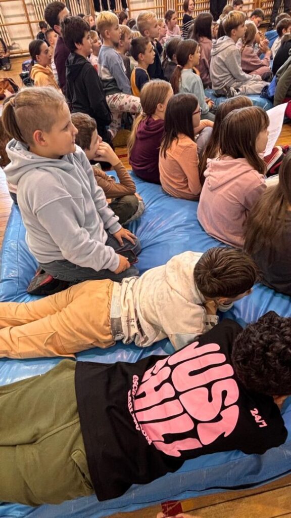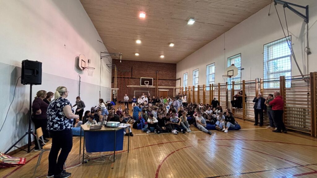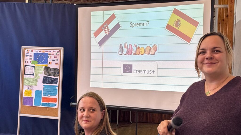 Kako od ove godine i mi sudjelujemo u ovom uglednom programu, okupili smo se u dvorani škole kako bi naši učenici mogli iz prve ruke saznati o Erasmusu: od učenika koji su prošle godine ugostili španjolske vršnjake , do naših učiteljica Klaudije Barukčić i Antonije koje su se vratile iz pripremnog putovanja u Španjolskoj. One su nam pokazale što je sve pred nama u projektu kojeg provodimo, pričajući o svom putovanju i iskustvima na zabavan i zanimljiv način. Slušali smo Himnu slobodi, a učenici su vodili program.