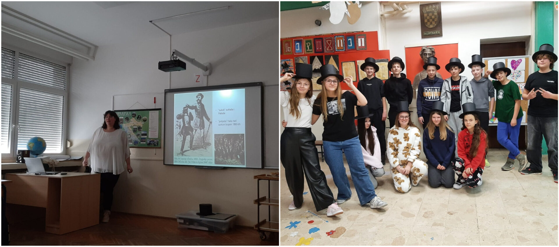 Prisjetili smo se utjecaja znanstvenog i tehnološkog razvoja Prve i Druge industrijske revolucije posebice na promjene u životu građanskog sloja i promjenama u položaju žena. Proučavali smo slike kao povijesni izvor, upoznali modne trendove dama i gospode, sukob surkaša i frakaša, buđenja nacionalne svijesti i Hrvatskog narodnog preporoda. Izradili smo svatko svoj cilindar i na trenutak se vratili u gradske salone.
